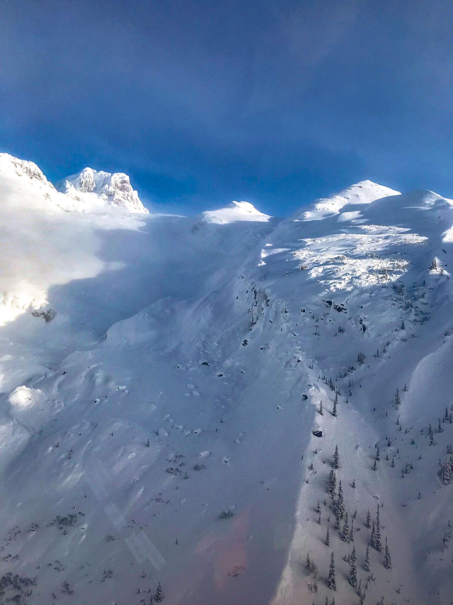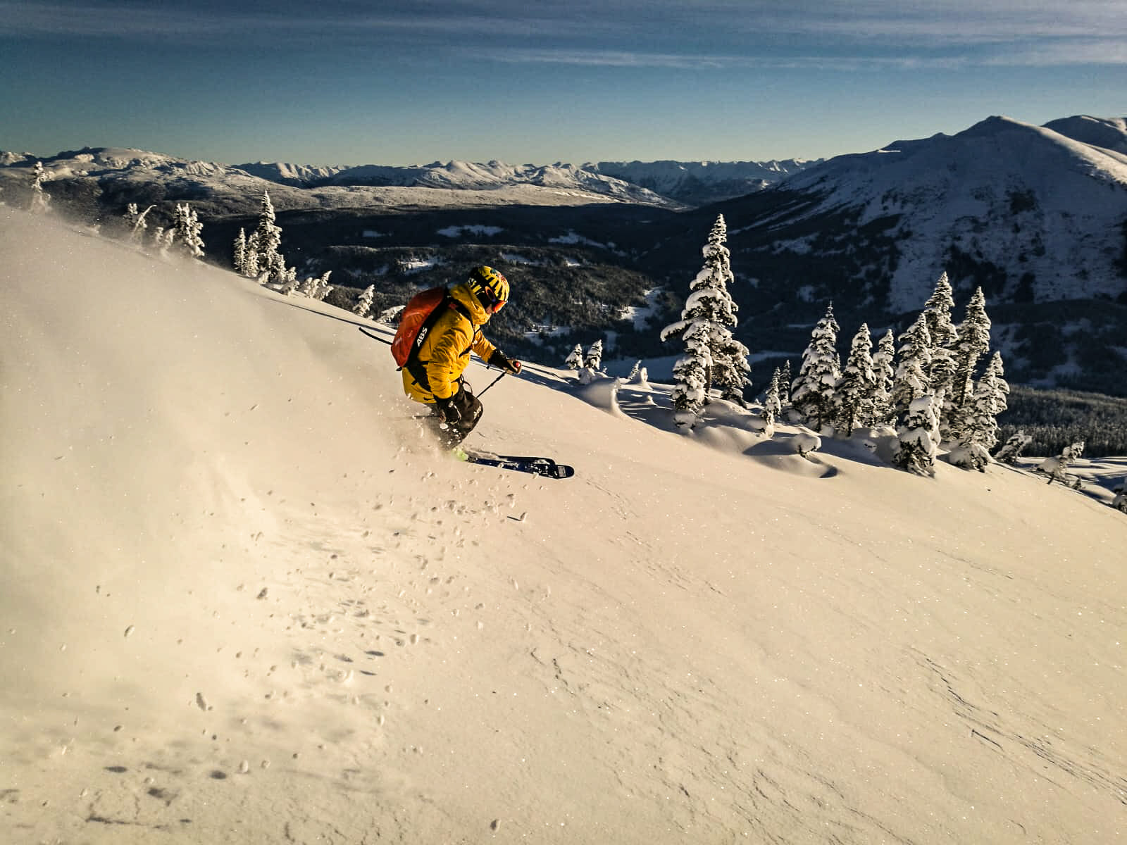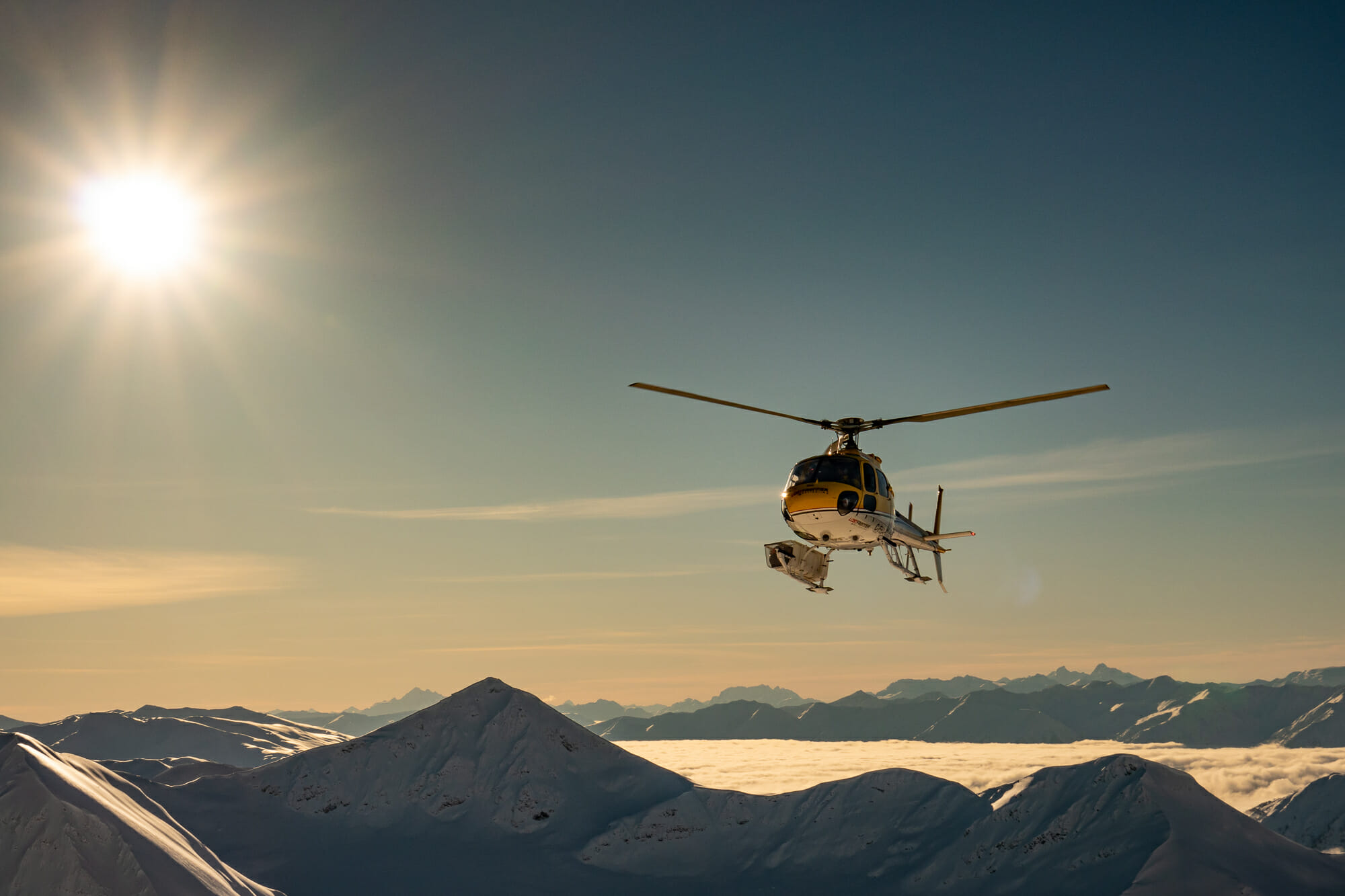 In the Alpine, our average weekly snow quality ratings have ranged from Very Good to Excellent. Lower down in the trees, the quality of skiing has been consistently rated Good to Awesome, no doubt helped by constant snow refreshes. When the sun came out, it rewarded us with some absolutely spectacular bluebird heli skiing days. The sun sat low on the horizon, creating a mesmerizing field of diamonds effect in the snow. Blankets of valley fog made for some incredible views and flight experiences as we explored far and wide.