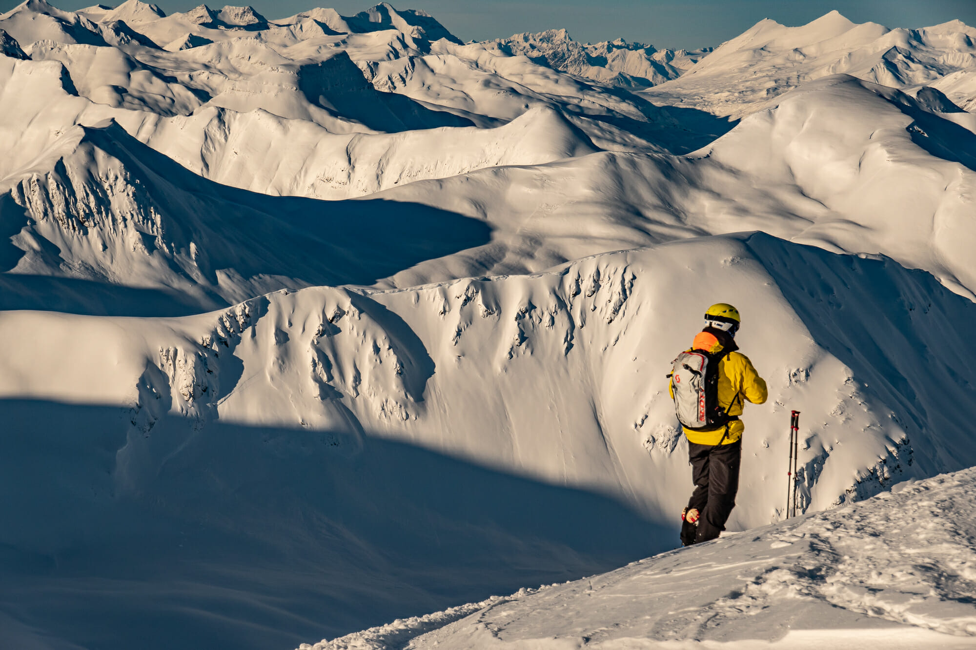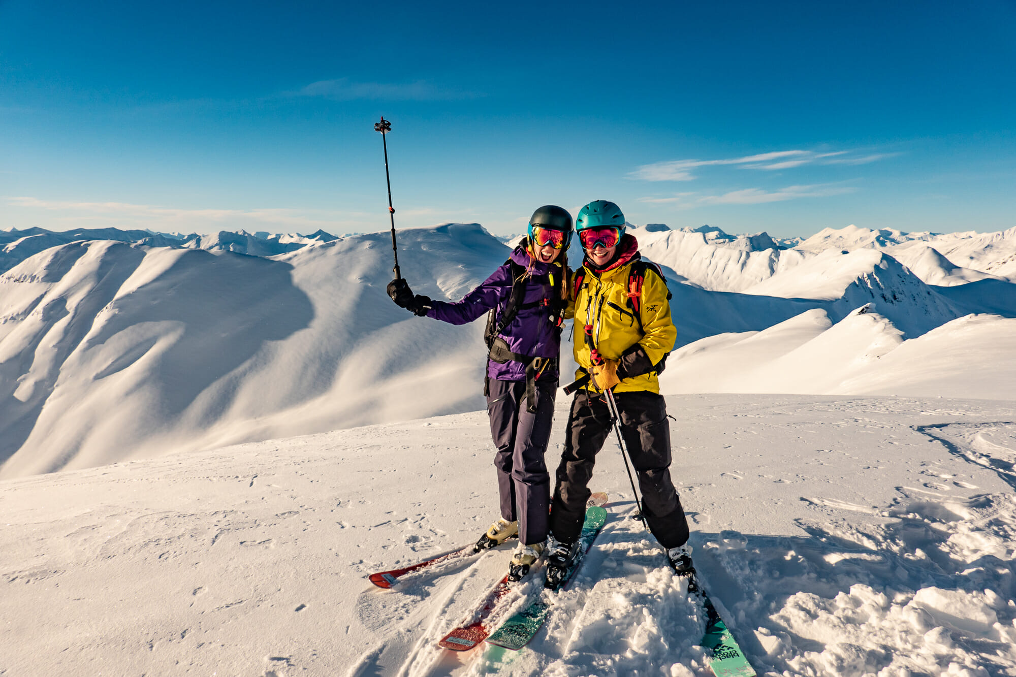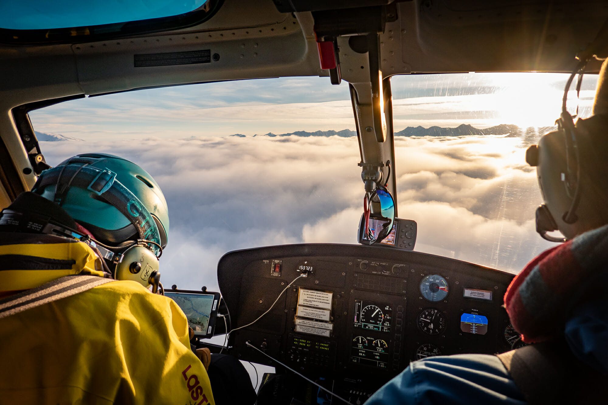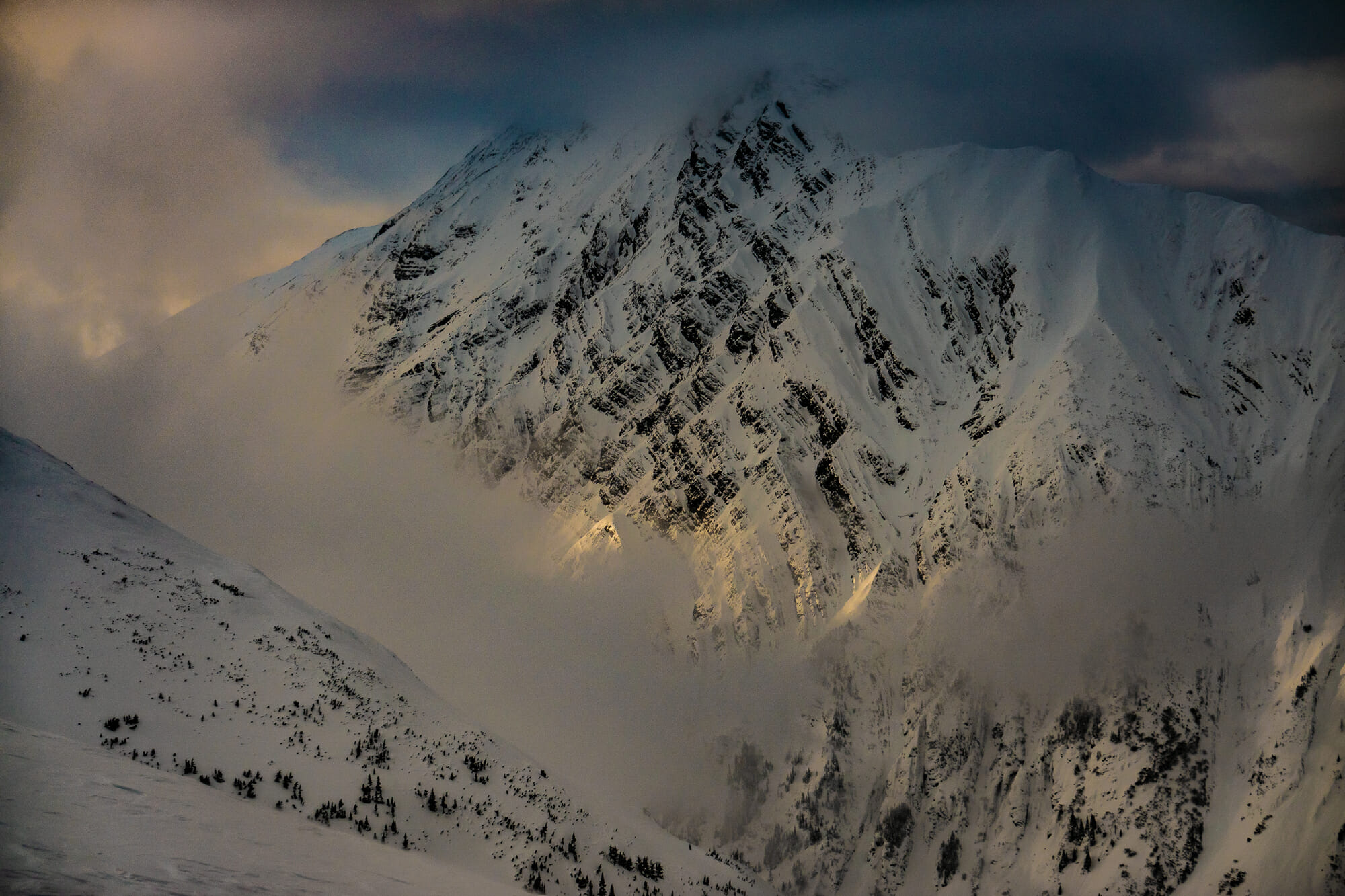In the Alpine, our average weekly snow quality ratings have ranged from Very Good to Excellent. Lower down in the trees, the quality of skiing has been consistently rated Good to Awesome, no doubt helped by constant snow refreshes. When the sun came out, it rewarded us with some absolutely spectacular bluebird heli skiing days. The sun sat low on the horizon, creating a mesmerizing field of diamonds effect in the snow. Blankets of valley fog made for some incredible views and flight experiences as we explored far and wide.