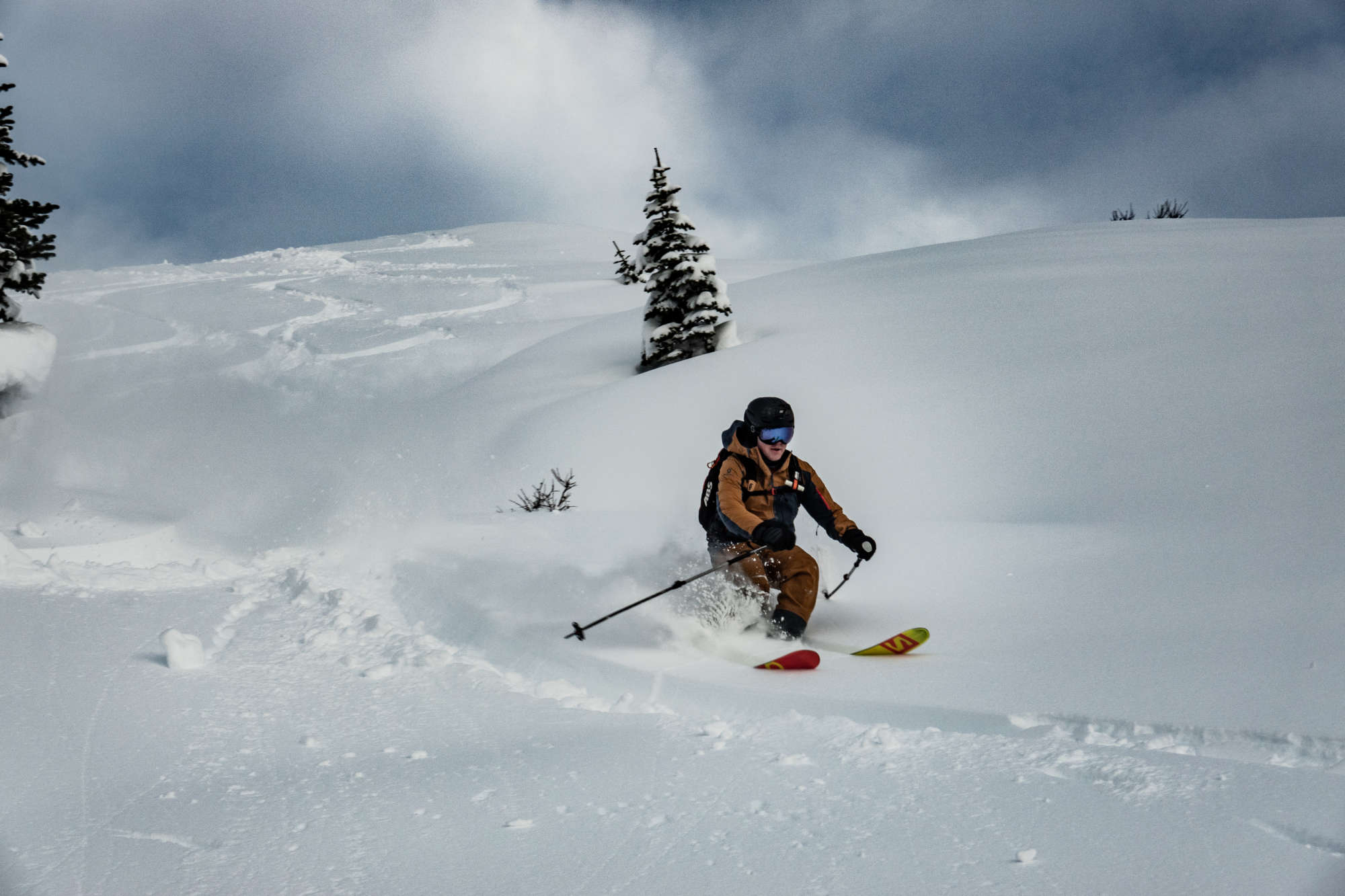 As you head into the higher elevations, the snowbase has built up nicely for this time of the year. In our Red Flat skiing area, not far from Bell 2 Lodge, we are currently sitting at a snowbase of around 200 cm [79 inches] at 1,000 m [3,300 ft] in elevation. Snow coverage is excellent and we are skiing right down into the valley bottoms on many of our runs in the nearby Owl Creek drainage.