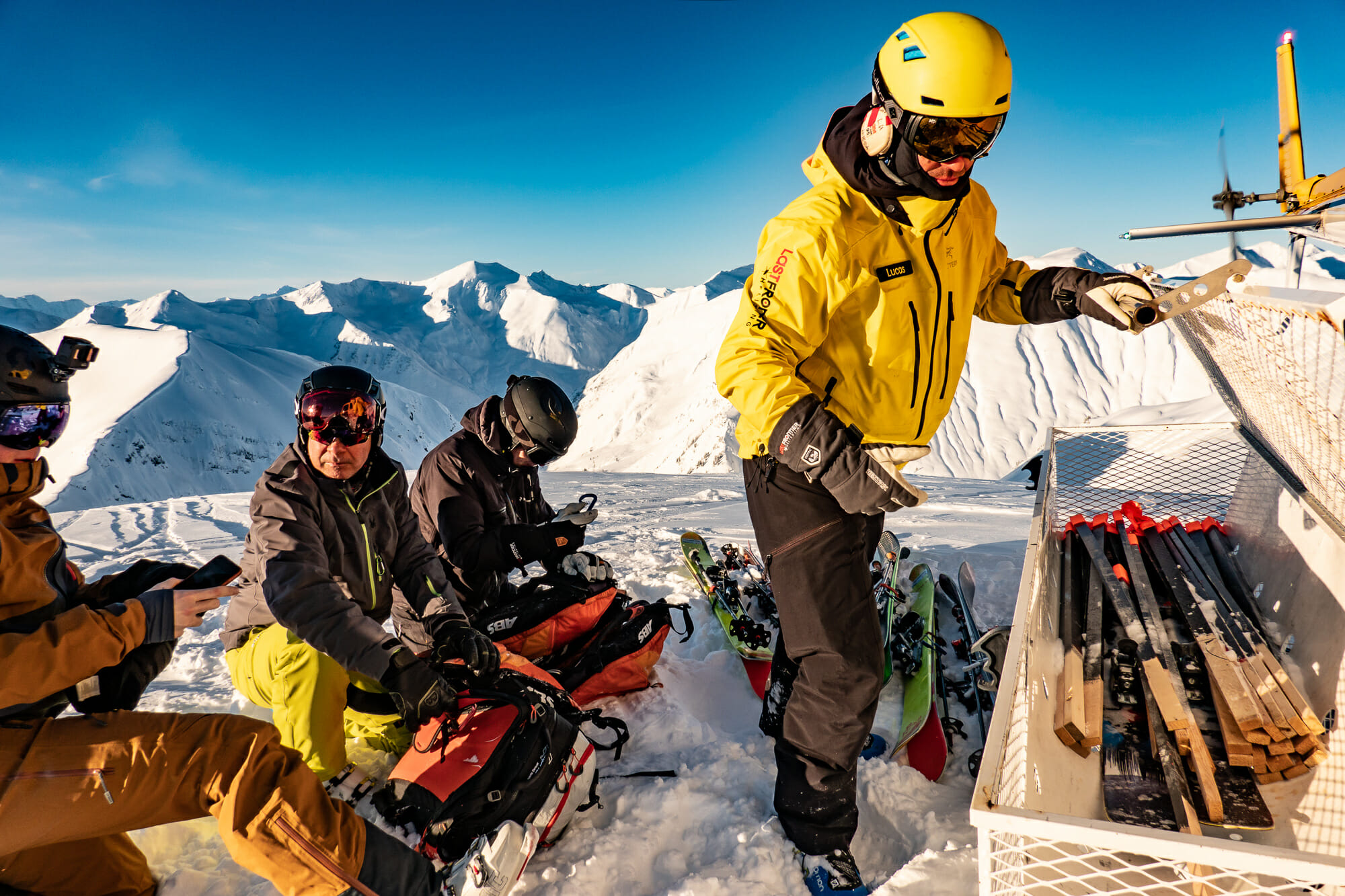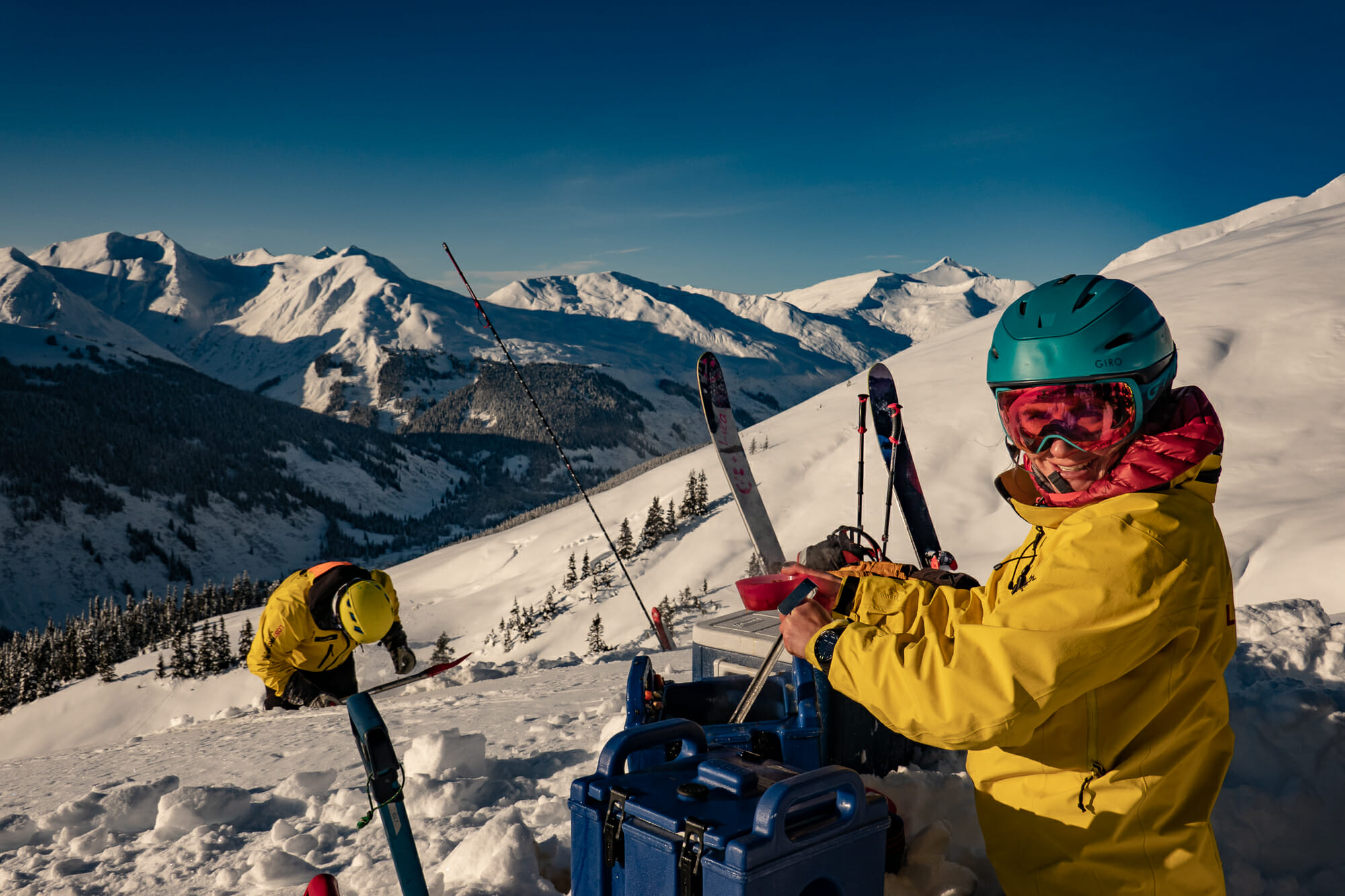 January 26th marked the first day of heliskiing at our Ripley Creek operation based out of Stewart. Our guides spent a week setting up for the season, which involves getting our remote fuel caches in order, installing radio repeaters on mountain tops and checking that all the gear is in order. The base crew was busy preparing the Bitter Creek Café, where we house our gift shop, restaurant and bar. Up in the mountains, we are reporting a snowbase of 234 cm [92 inches] at 1,000 m [3,300 ft] in elevation and good ski quality above treeline. It was a really weird and disappointing first day to the season with torrential rain to about 1,000 m. It was snowing up high so when the skies turned blue the following day, spirits were lifted. A couple of days of clearer weather provided some good alpine skiing but not the usual access to our tree runs that we have in January. As we write, it’s now cooler and snowing hard again down to sea level. So what can learn from all of this? The weather will always change 🙂